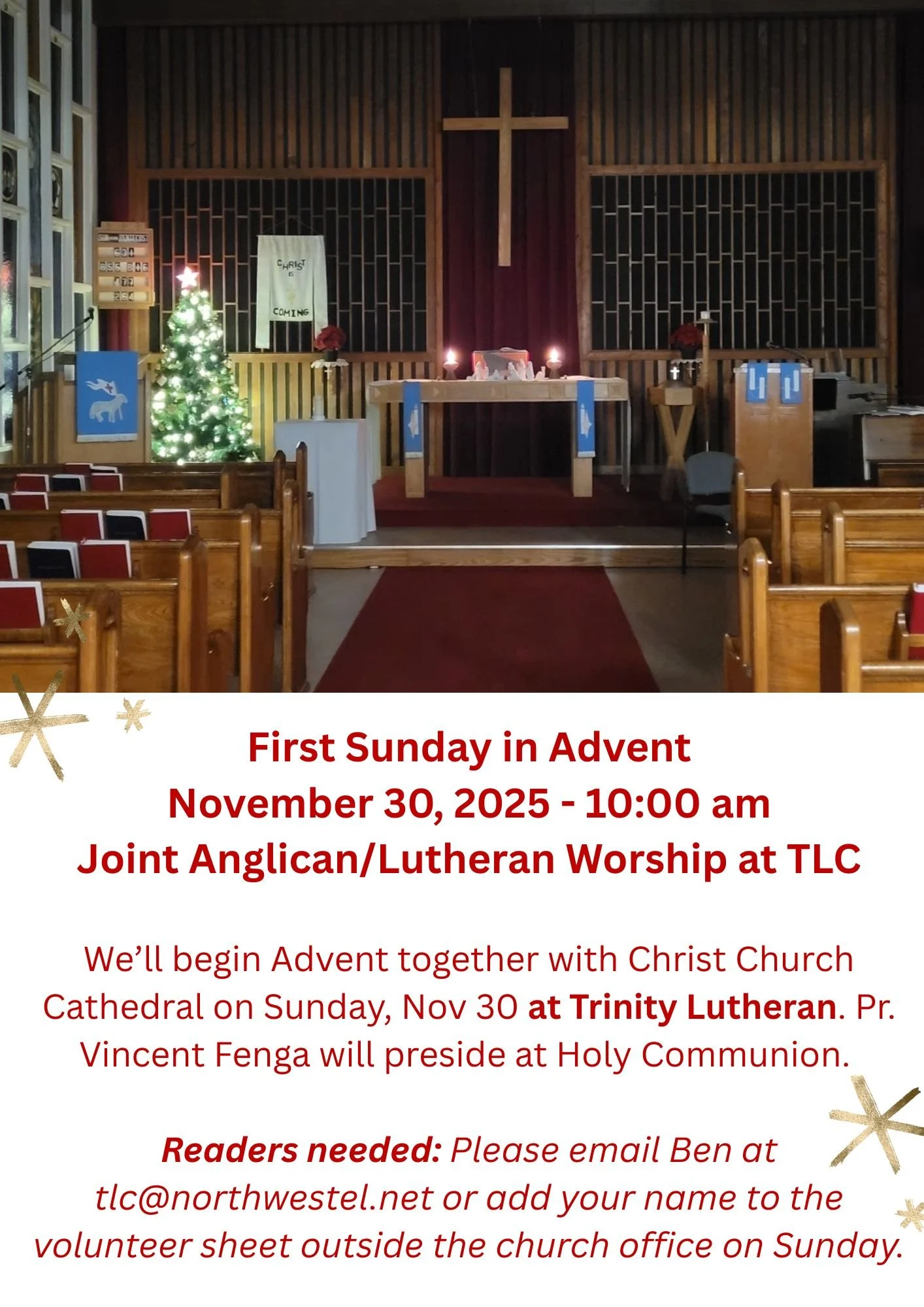 Join us for Service and Holy Communion with Rev. Bill Bulger, who is visiting from Alberta.